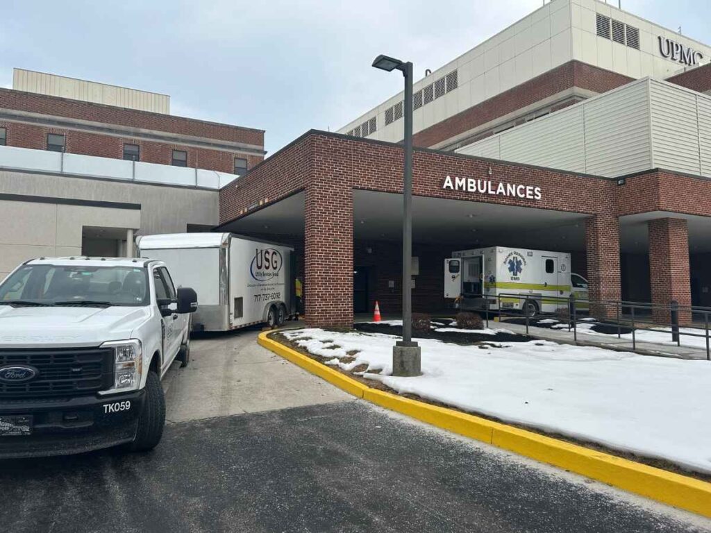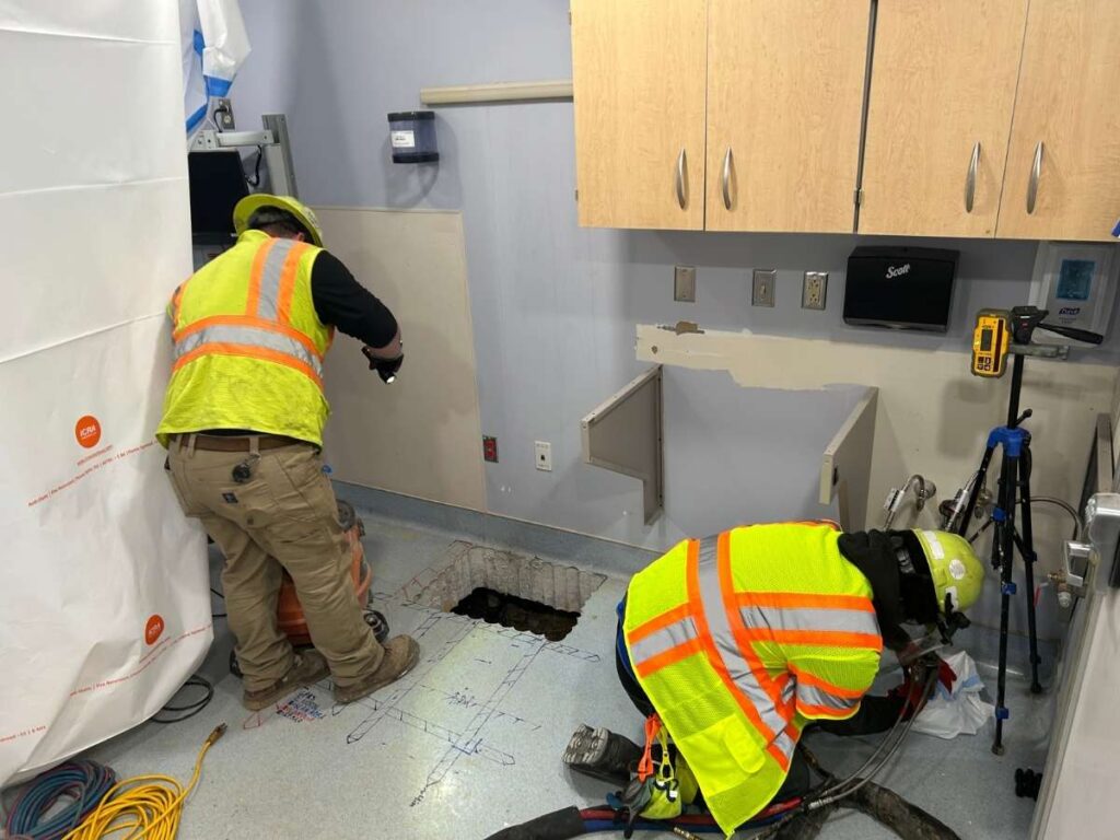 Emergency rooms are vastly important for communities, offering help to those who need immediate care. They exist to handle urgent situations, but when a hospital in Pennsylvania faced an emergency of its own, USG was there to answer the call. It was discovered by a subcontractor hired by the hospital maintenance team that beneath the ER, a sewer line had been leaking. This wasn’t a small leak either, in fact, the leak appeared to have been occurring for years, washing away support soils beneath the hospital floor. The void discovered from the leak was massive: 12 feet long, 2 feet wide, and varying between 1 and 3 feet in depth. After sewer line repair, the hospital urgently needed a solution that would reestablish connectivity between the support slab and underlying soils without interrupting daily operations.