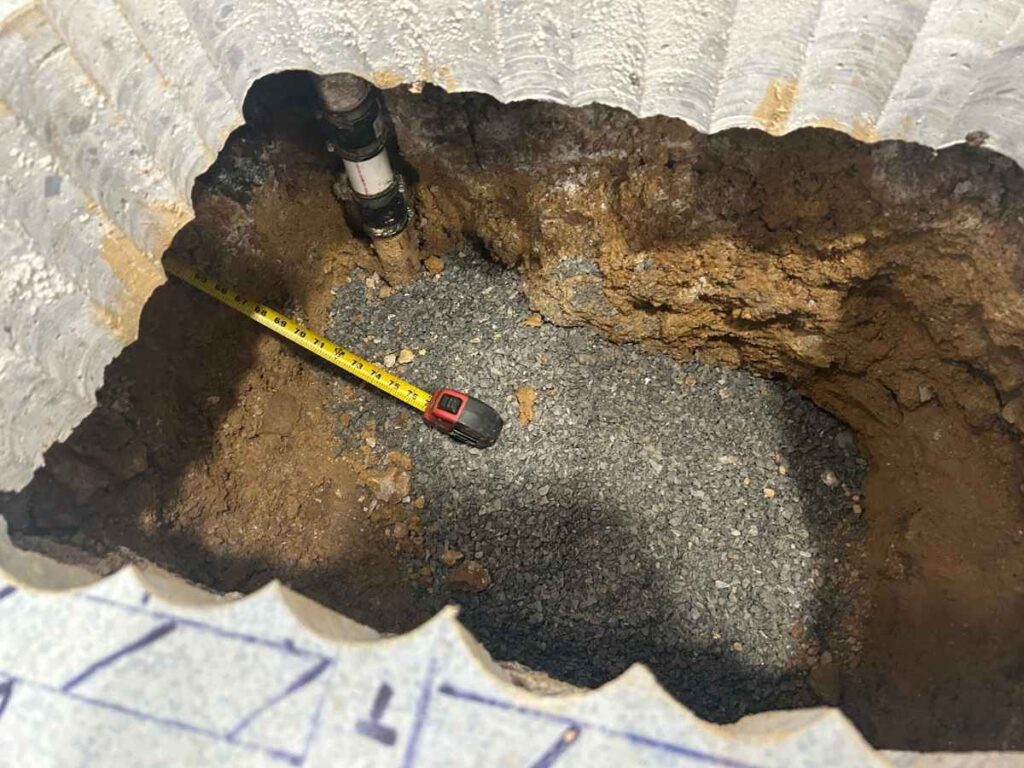 Because the floor had already been removed for the sewer repair, USG was able to take advantage of direct access to the underlying void, eliminating the need for additional drilling. Polyurethane was injected beneath the slab through the existing opening, allowing the material to reach the irregularly shaped void with precision.