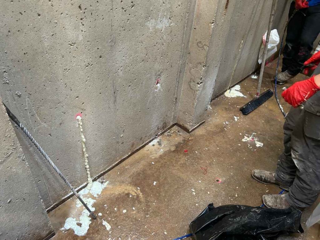 Through collaboration with Charlie Lerman of NCFI Geotechnical and thorough planning by the USG team, the project was completed efficiently within a single week. Active water infiltration through the walls and floor was successfully mitigated, creating the dry conditions required for the next phase of work.